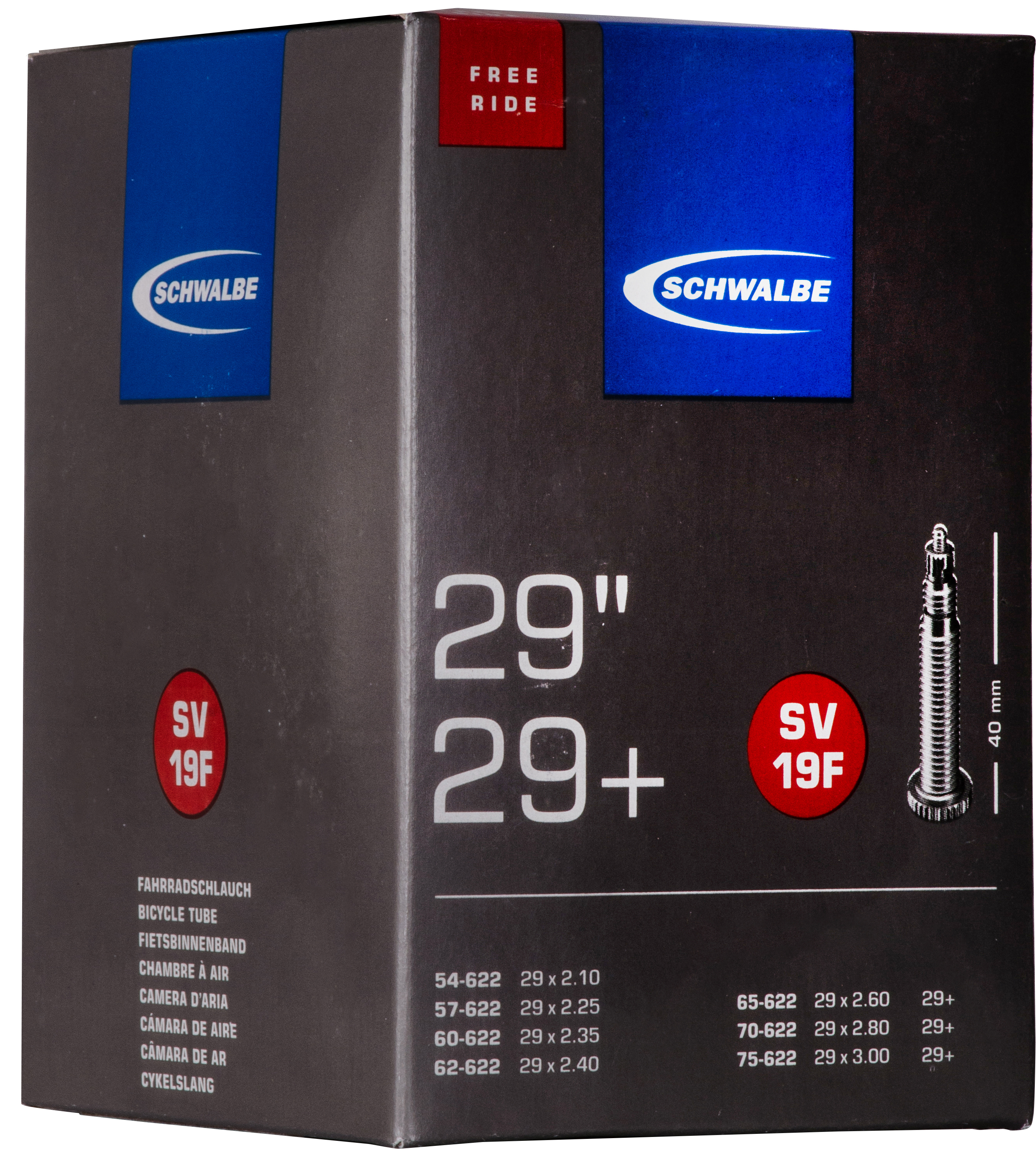 SCHWALBE duše UNIVERZÁLNÍ 27.5"/28"/29", 54/75-584/622, SV 40 mm, FREERIDE, BUTYL, 215 g