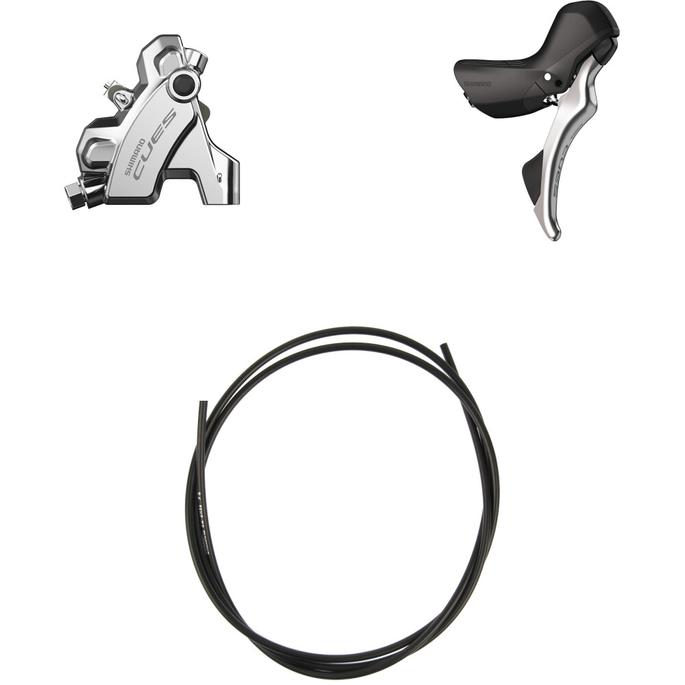 SHIMANO kotoučový brzdový set CUES je kompletní hydraulická brzdová sada určená pro spolehlivý a plynulý brzdný výkon. Obsahuje ergonomickou brzdovou páku, výkonný dvoupístkový brzdový třmen a brzdovou hadi