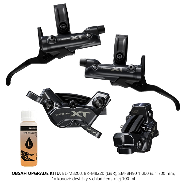 SHIMANO UPGRADE set XT BR-M8220 BL-M8200 BR-př+zad/BL-levá+pravá SM-BH90-1000mm+1700mm resin des.